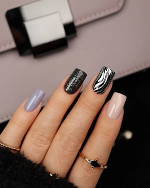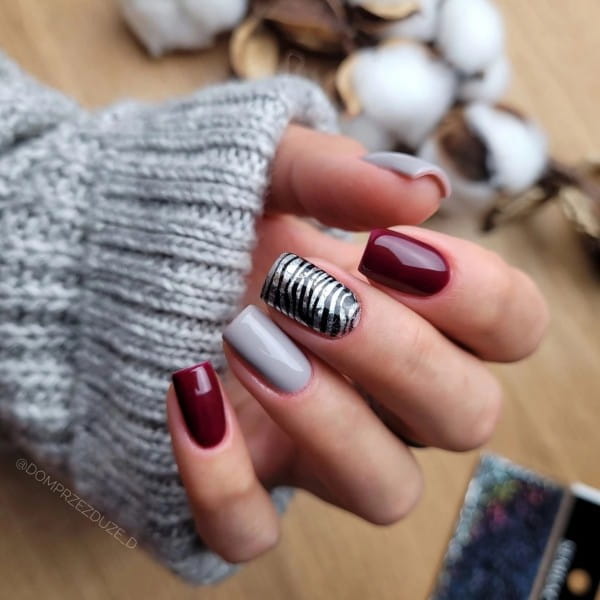4. Przykładamy folię do paznokcia mniej błyszczącą stroną i odbijamy ją na warstwie dyspersyjnej zaaplikowanego wcześniej lakieru hybrydowego Semilac, pamiętając o jej delikatnym dociśnięciu do paznokcia.