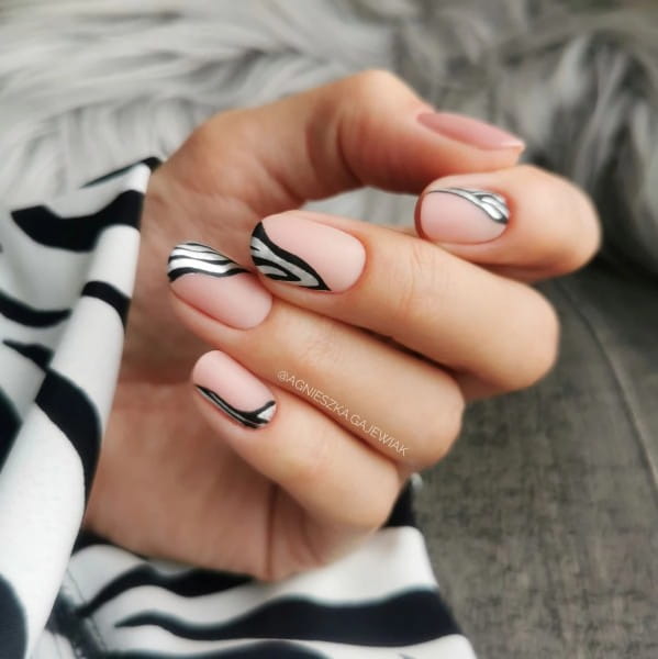 5. Nakładamy wzór zdobienia Semilac Klej do folii tranferowej 7ml za pomocą np. dowolnego pędzelka z oferty Semilac lub Semilac Dotting Tool i utwardzamy w lampie.