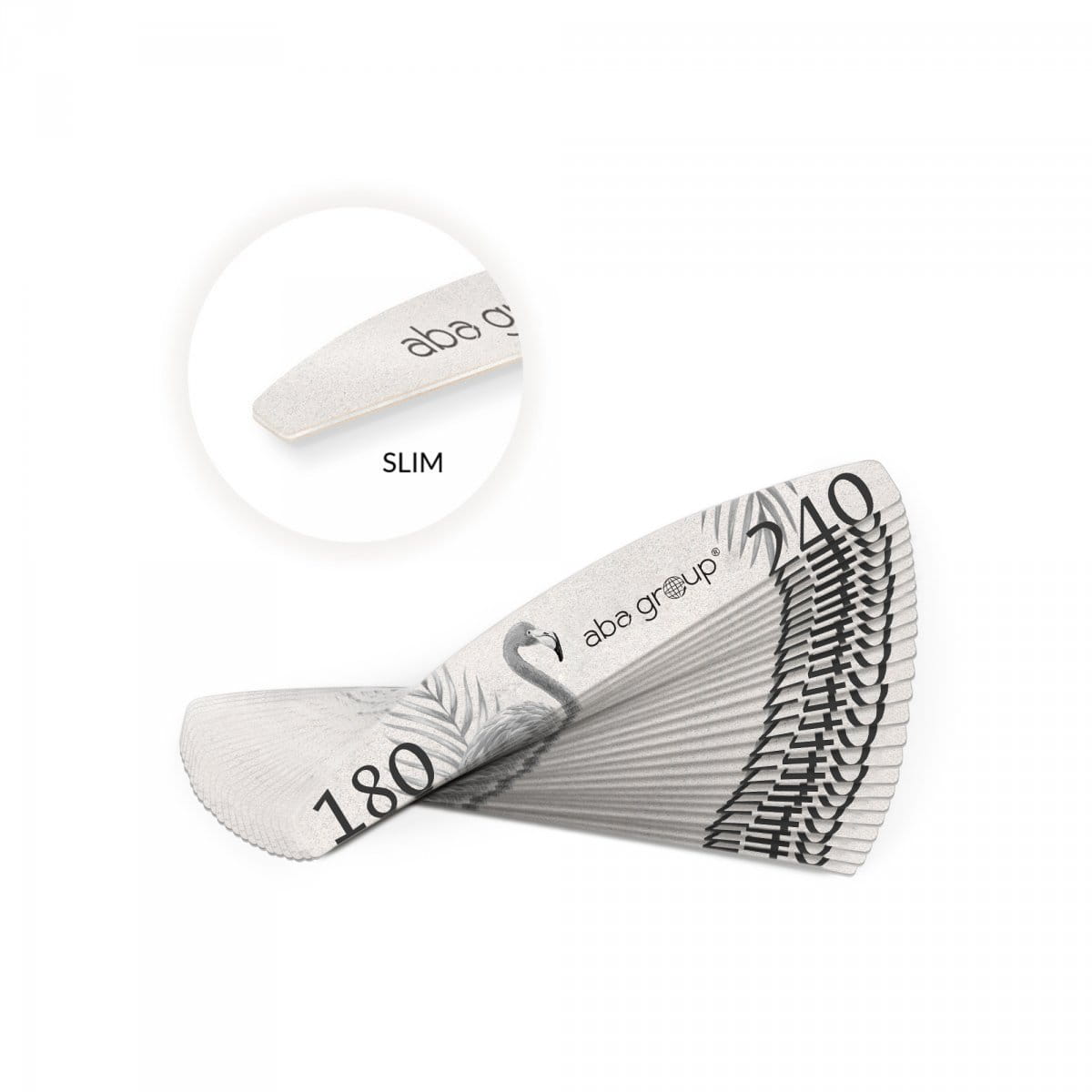 Jednorazowe pilniki do paznokci Aba Group PÓŁKSIĘŻYC o gradacji 180/240 SLIM dedykowane do użytku profesjonalnego. Pilniki przeznaczone są do pracy z masą żelową i akrylową, zalecane do zabiegów wymagających efektywnego, a jednocześnie bezpiecznego opiłowywania, skracania paznokci, czy też do wstępnej obróbki paznokci.