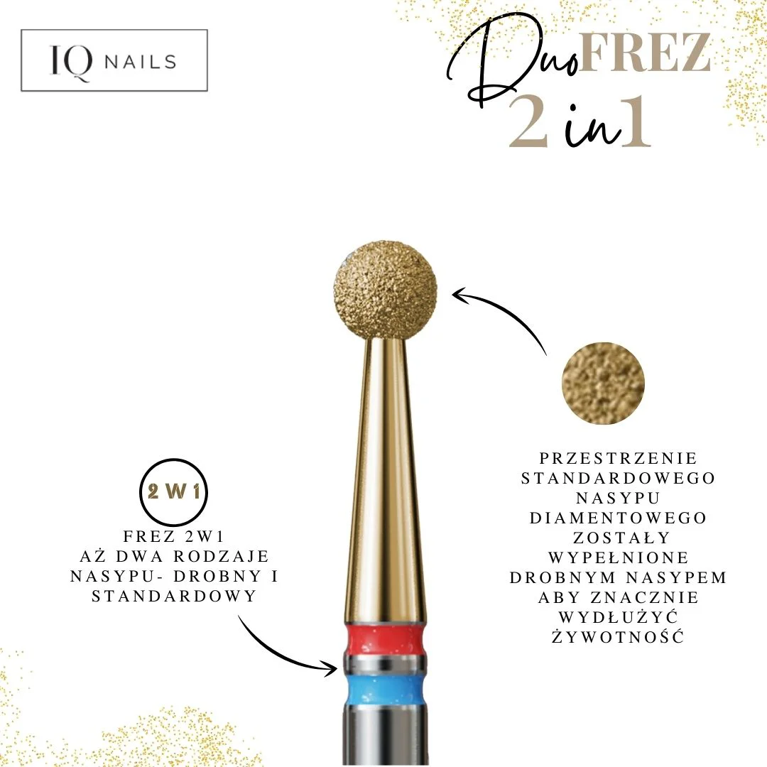 IQ Nails Frez diamentowy w kształcie kulki z nasypem 2w1 DuoFrez v104.001.FM.025_ZRN