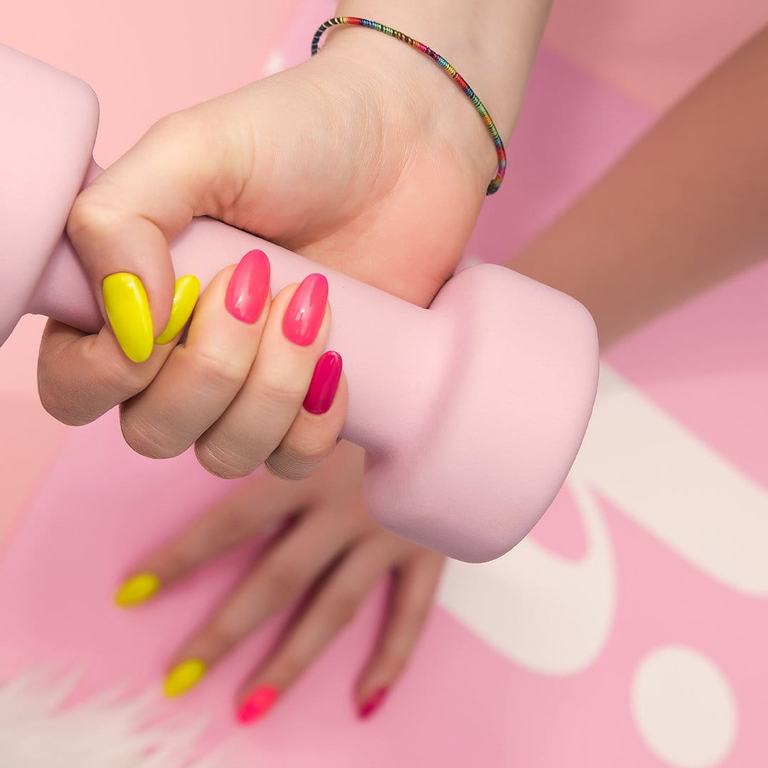 Trzymaj się mocno! Zaczynamy ostrą jazdę z żółto-zieloną mieszanką z kategorii wybuchowych. To zdecydowana barwa sukcesu i mega energetyczna dawka barwnych endorfin. W Twoich żyłach płynie krew zwycięzców, więc nie poddawaj się, a jeżeli upadasz – po prostu wstawaj! Razem z lakierem hybrydowym Hi! odczujesz, że sport to nie tylko satysfakcja, ale i piękno!