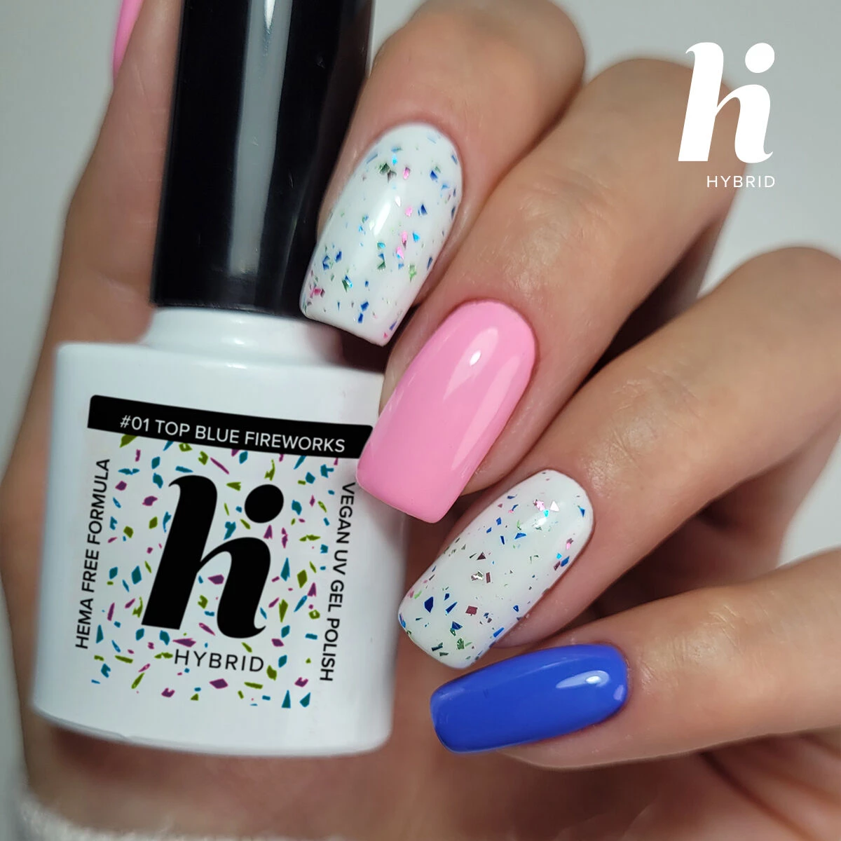 #01 hi hybrid HEMA Free Top No Wipe Blue Fireworks 5ml