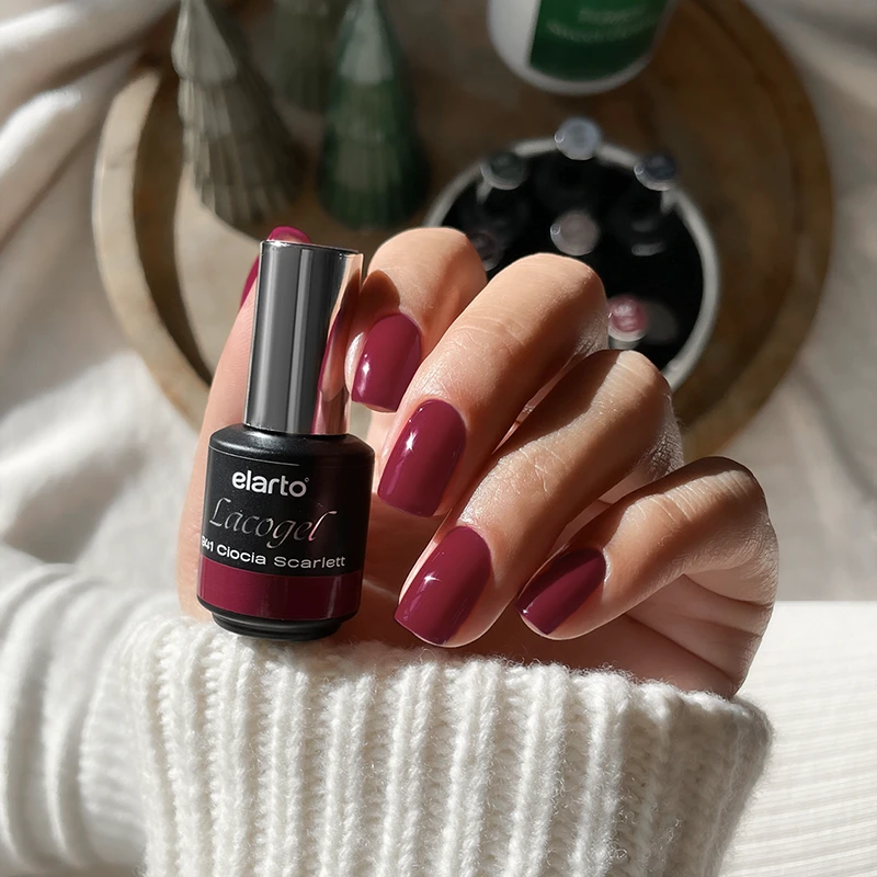 Kolor, który ciepłem otula zimowe dni. Lakier hybrydowy Lacogel 941 marki Elarto to soczysty malinowo-czerwony odcień pełen energii, elegancji i kobiecości. Stylizacja, która rozgrzewa pozę i sprawia, że nawet chłodniejsze dni wydają się cieplejsze.