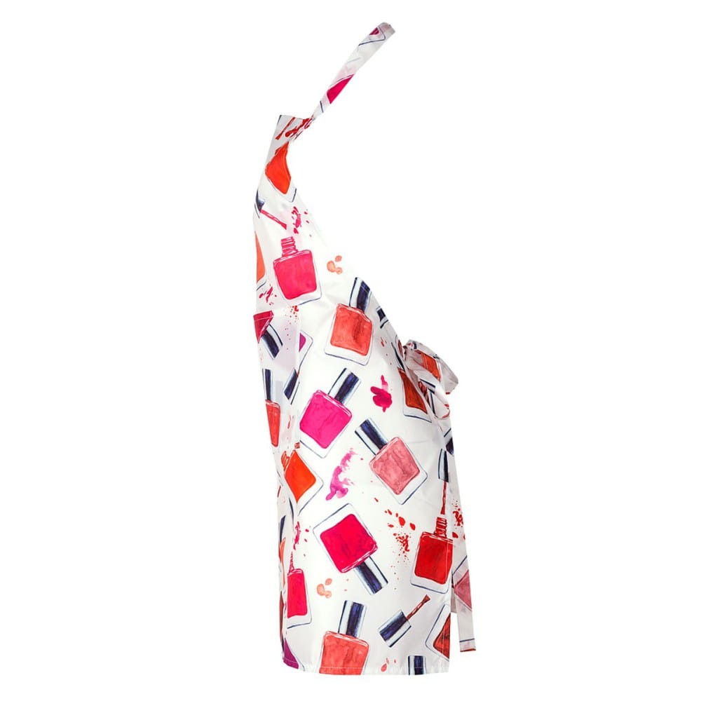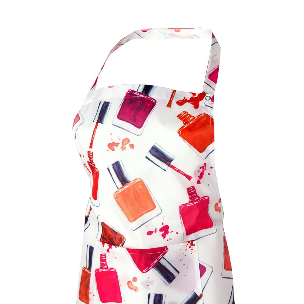 Fartuszek ochronny o klasycznym kroju z printem JUST NAILS w białej wersji kolorystycznej dedykowany stylistkom paznokci. Klasyczny krój kosmetycznego fartuszka sprawia, że przylega on do ciała i wysmukla sylwetkę. Na fartuszki nadrukowane są graficzne elementy najczęściej związane z branżą beauty. Fartuszek Just Nails dla stylistek paznokci. Ten wzór pomoże Ci przełamać stonowaną stylizację do pracy i wyrazić siebie.