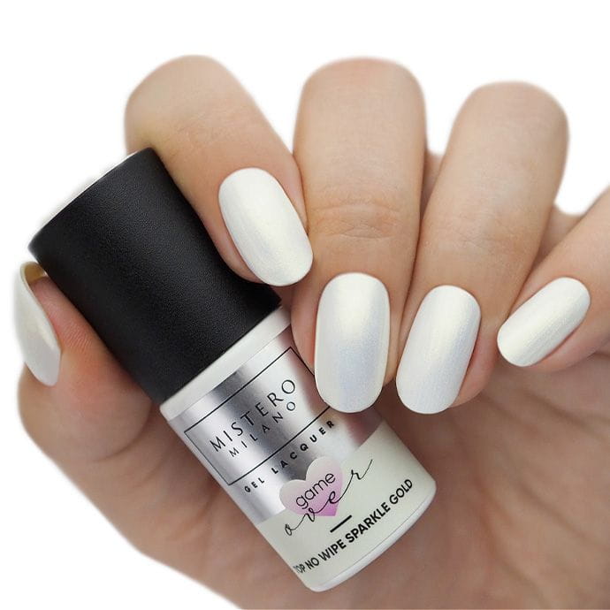 Opis produktu: Top hybrydowy no-wipe Game Over! Sparkle Gold to idealne wykończenie ślubnej stylizacji. Nadaje paznokciom opalizujący blask, zabezpieczając jednocześnie całość manicure. Dzięki niemu Twoje paznokcie będą eleganckie i pełne uroku.