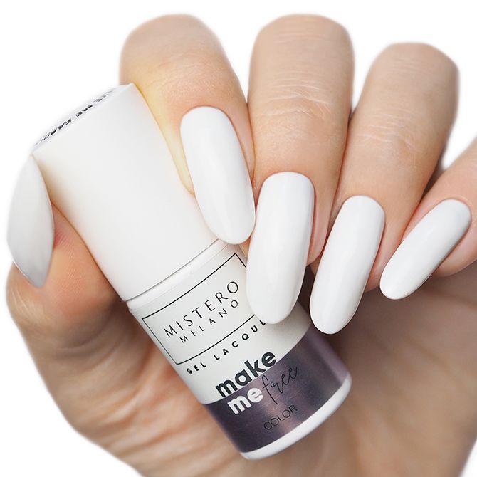 Lakier hybrydowy do paznokci Make me Fabulous to intensywnie napigmentowany biały odcień, który stanowi bazę w kolekcji każdej pazurkomaniaczki. To podstawowy kolor do tworzenia francuskiego manicure, baby boomera, ombre oraz innych kolorowych zdobień. To biel która swoim mocnym pigmentem wręcz onieśmiela i sprawia, że chcesz więcej i więcej. Klasyczny, ponadczasowy biały lakier hybrydowy to must have w Twoim kuferku.