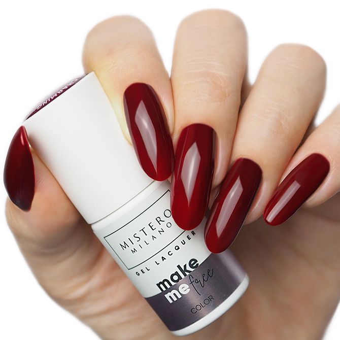 Ciemny bordowy lakier hybrydowy może być noszony jako samodzielna stylizacja na paznokciach lub w połączeniu z innymi kolorowymi lakierami hybrydowymi. Spróbuj połączyć ten ocień z bielą tworząc na paznokciach motywy karciane, lub dodaj nieco pyłków tworząc na paznokciach lustrzaną taflę. Mirror effect to coś co zawsze wygląda czarująco.