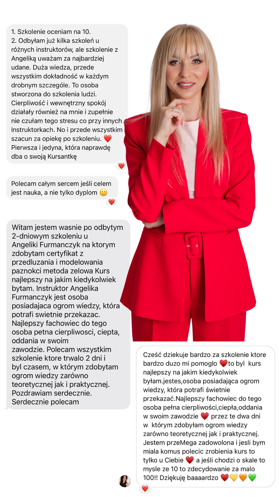 Możesz wciąż próbować sam/ sama i powielać swoje błędy lub popracować na szkoleniu z Angeliką, która od podstaw pokaże Ci jak powinna wyglądać praca żelem.