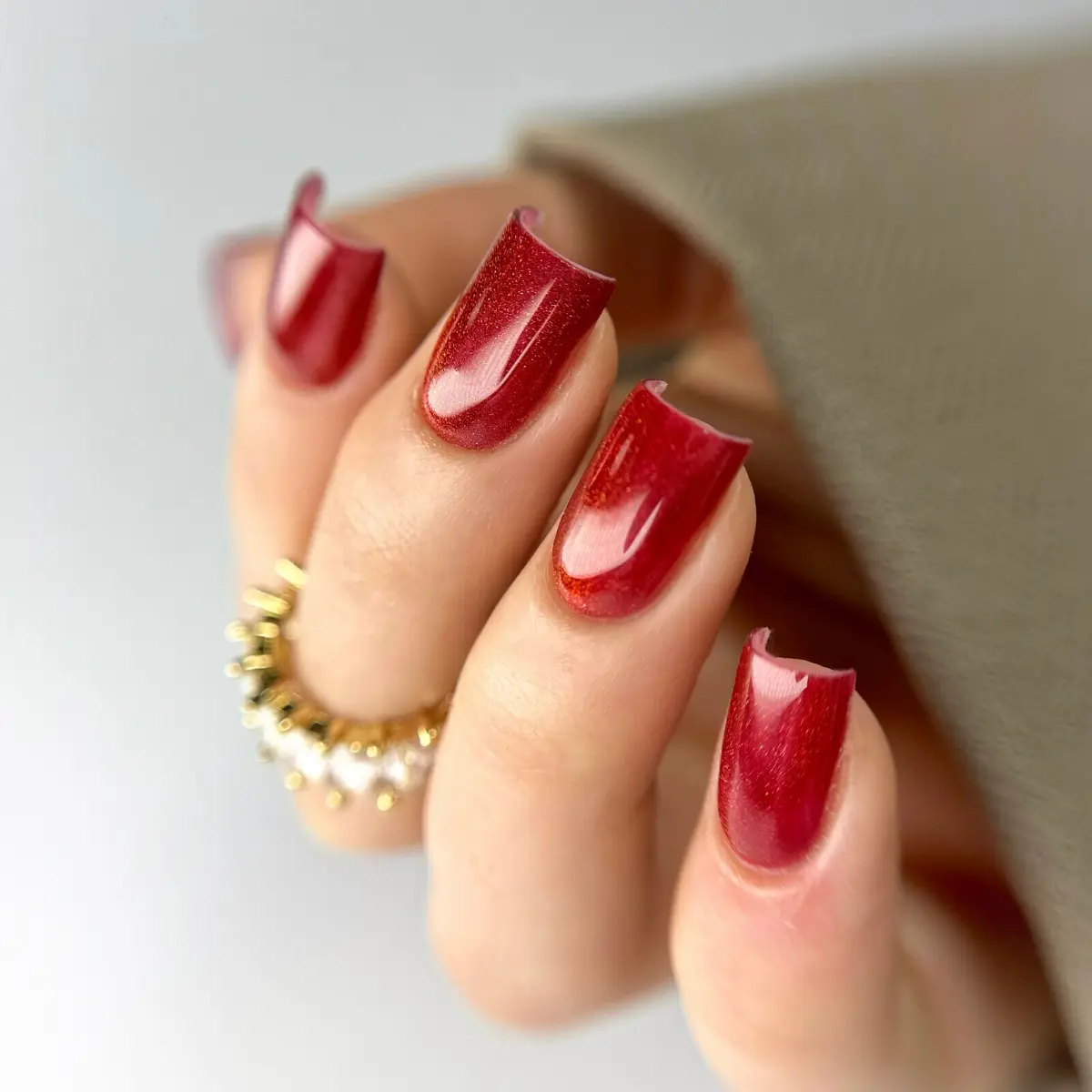 - Intensywny czerwony odcień z efektem Cat Eye.