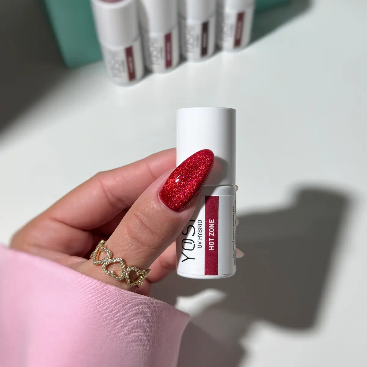 Yoshi Hot Zone 265 to profesjonalny lakier hybrydowy z kolekcji Fireline, charakteryzujący się intensywnym czerwonym kolorem z magnetycznym efektem Cat Eye. Kremowa konsystencja produktu zapewnia łatwą aplikację, a pełne krycie uzyskuje się po dwóch cienkich warstwach. Idealny do tworzenia dynamicznych stylizacji hybrydowych o głębokim odcieniu i wyrazistym blasku.