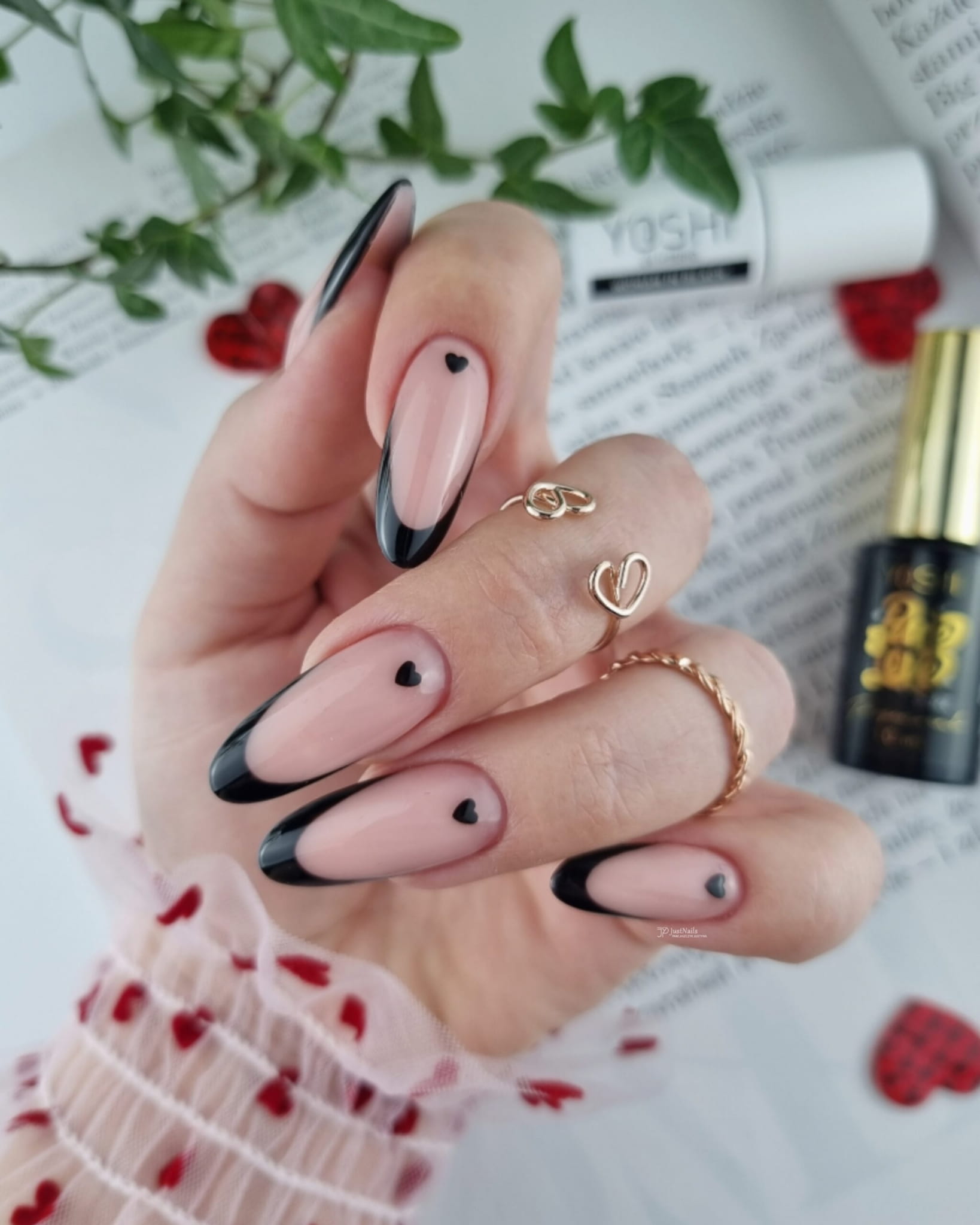 YOSHI Pure Love Top BLACK UV Hybrid 10 ml – transparentny top z czarnymi serduszkami