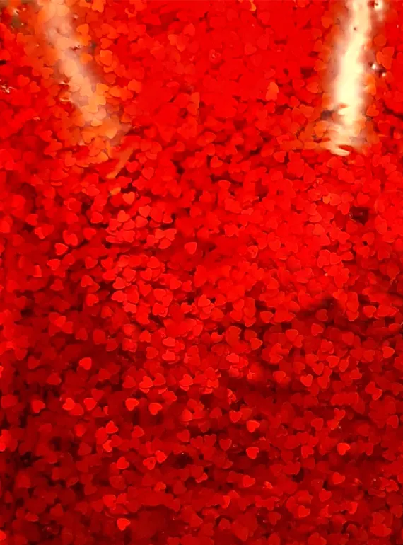 - Transparentna baza z zatopionymi czerwonymi serduszkami