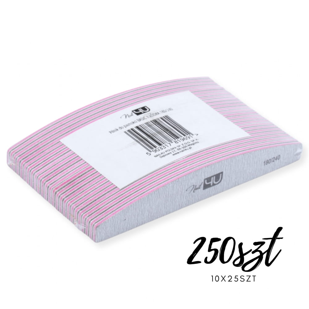 Zestaw 250szt Nail4U Pilnik Basic Łódka Naked 180/240