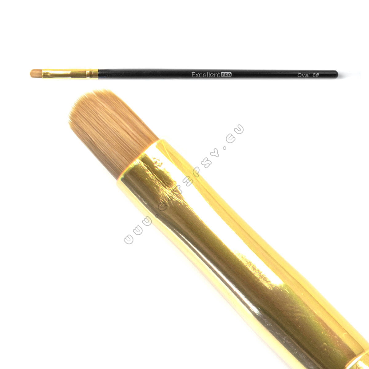 EXCELLENT PRO PĘDZELEK DO ŻELU #6 OWAL profesjonalny pędzelek przeznaczony do pracy z żelem oraz akrylożelem który charakteryzuje się bardzo wysoką jakością i wytrzymałością. Odpowiedni kształt i sztywne włosie pędzelka zapewnia pełną kontrolę nad materiałem podczas pracy oraz sprawia, że żel rozkłada się na paznokciu delikatnie i równomiernie.