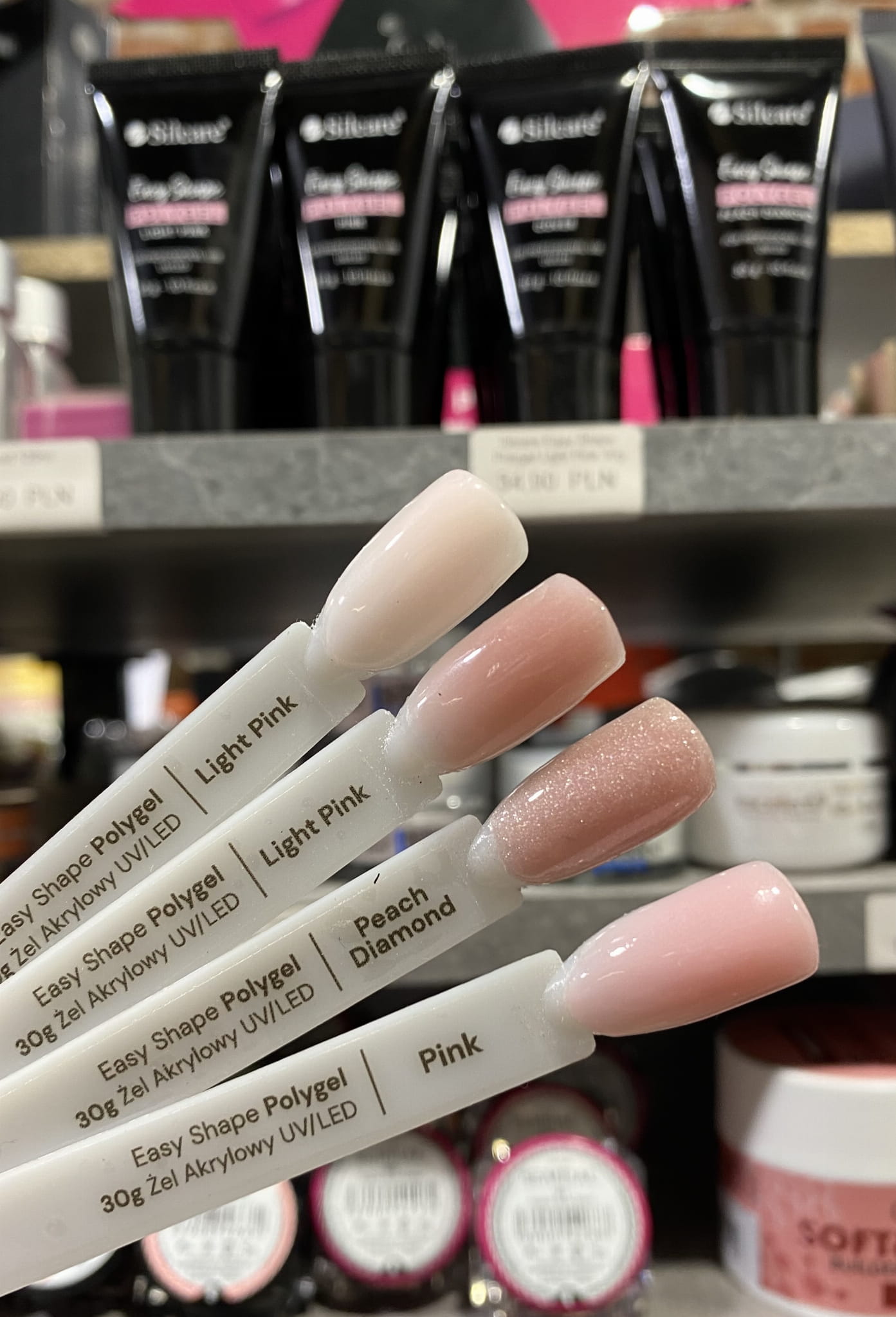 Easy Shape Polygel to innowacyjna formuła, która łączy w sobie zalety akrylu i żelu do stylizacji paznokci. Produkt pozwala na szybkie i łatwe zbudowanie paznokcia bez konieczności samodzielnego tworzenia masy budującej. Akrylożel jest elastyczny, twardy i wysoce odporny na uszkodzenia mechaniczne, dzięki czemu jest dużo mniej łamliwy w porównaniu do innych systemów manicure. Gęsta konsystencja poliżelu i brak właściwości samopoziomujących nie tylko zapobiegają spływaniu produktu z płytki, ale też wydłużają czas potrzebny do uformowania idealnego kształtu paznokcia za pomocą pędzelka zwilżonego w cleanerze. Easy Shape Polygel umożliwia przedłużenie oraz rekonstrukcję nawet słabej, rozdwajającej się czy łamliwej płytki paznokcia. Stylizacja akrylożelowa jest lekka oraz wygodna w noszeniu, a do tego wygląda bardzo naturalnie. Produkt można stosować na formie Dual, jak i na naturalnej płytce, co więcej, bezproblemowo utwardza się w lampie UV-LED i nie powoduje efektu pieczenia.