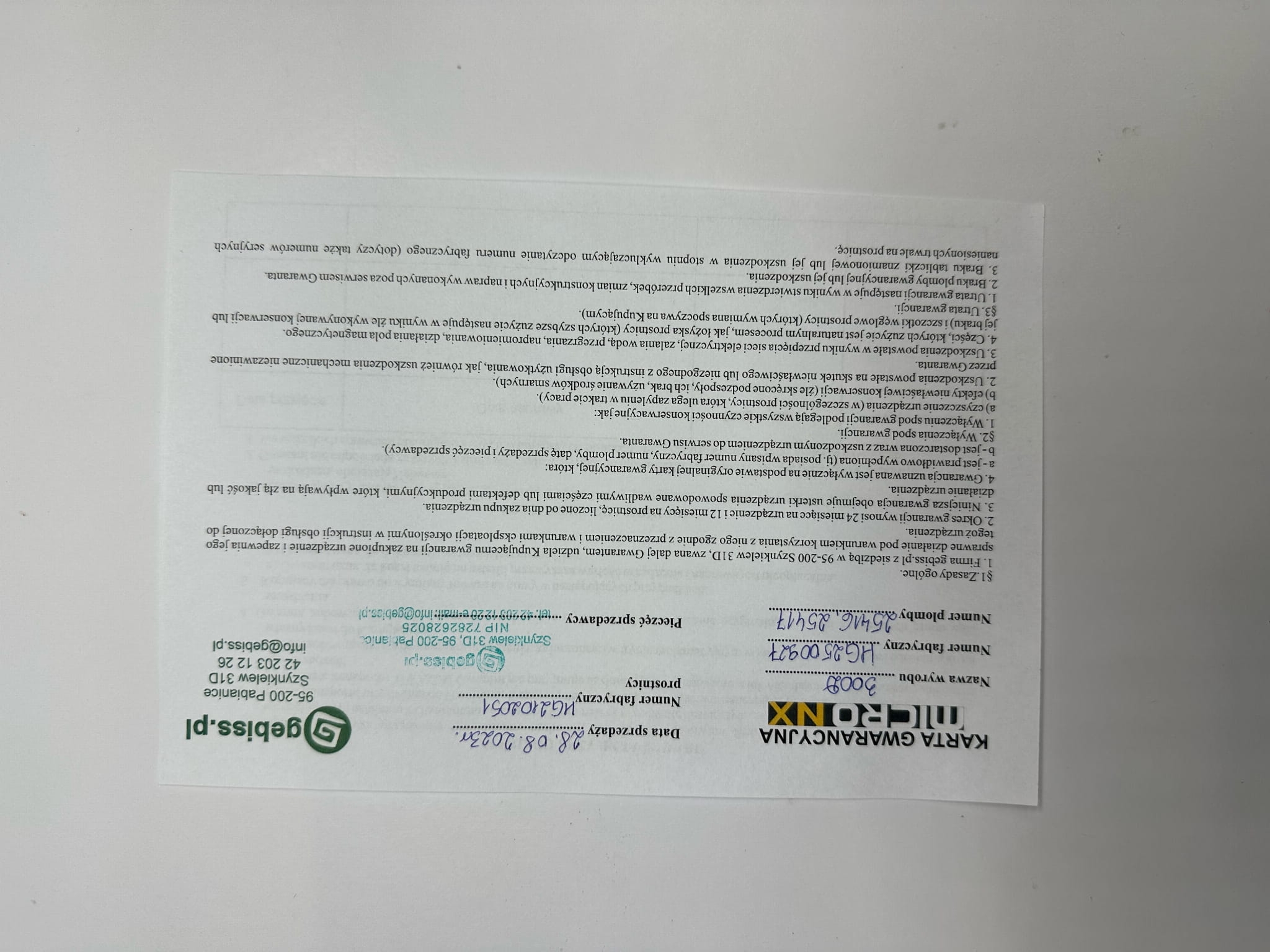 - Gwarancja: 24 miesiące (prostnica – 12 miesięcy)