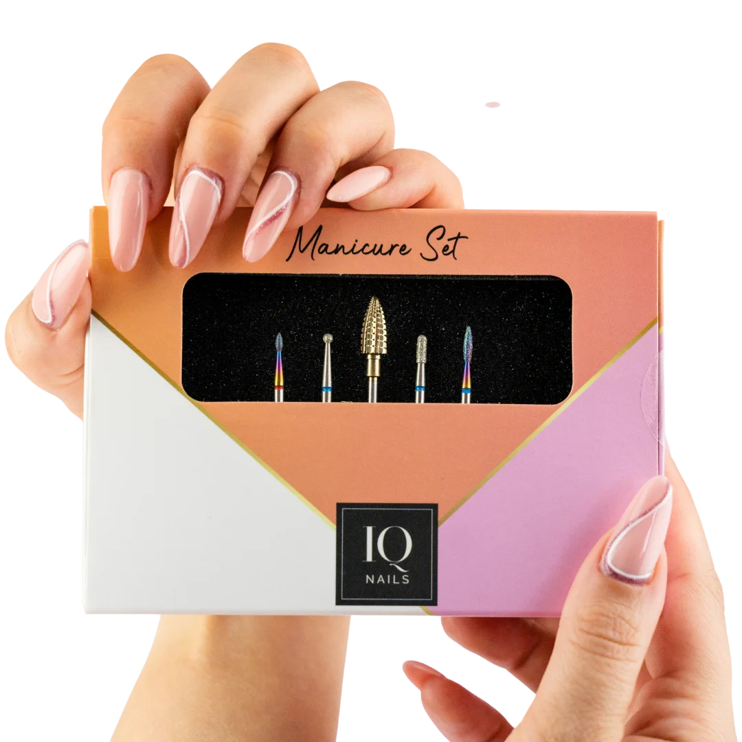 IQ Nails Pakiet Expert 2 - Zestaw 5 Frezów do Hybrydy, Żelu, Akrylu i Skórek