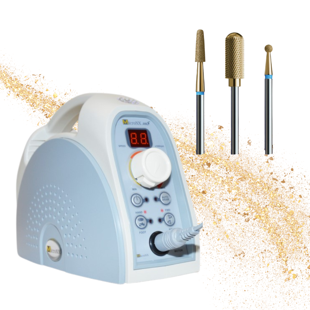 Zestaw Frezarka kosmetyczna MicroNx NX 300S + IQ Zestaw frezów Home Spa Gold