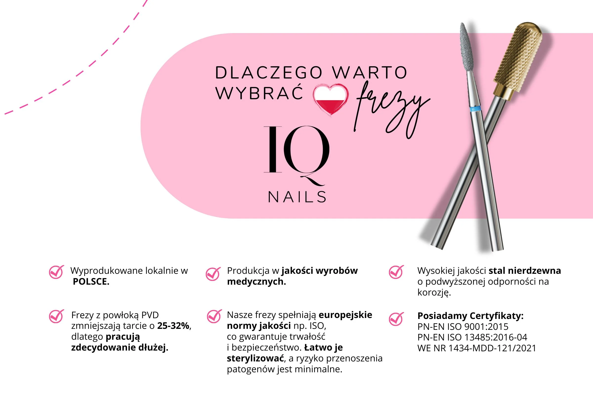 IQ Nails Express Mani by Pink Princess to połączenie funkcjonalności i estetyki. Dzięki odpowiednio dobranym frezom praca staje się szybsza, dokładniejsza i bardziej komfortowa, co bezpośrednio przekłada się na jakość wykonanej stylizacji.