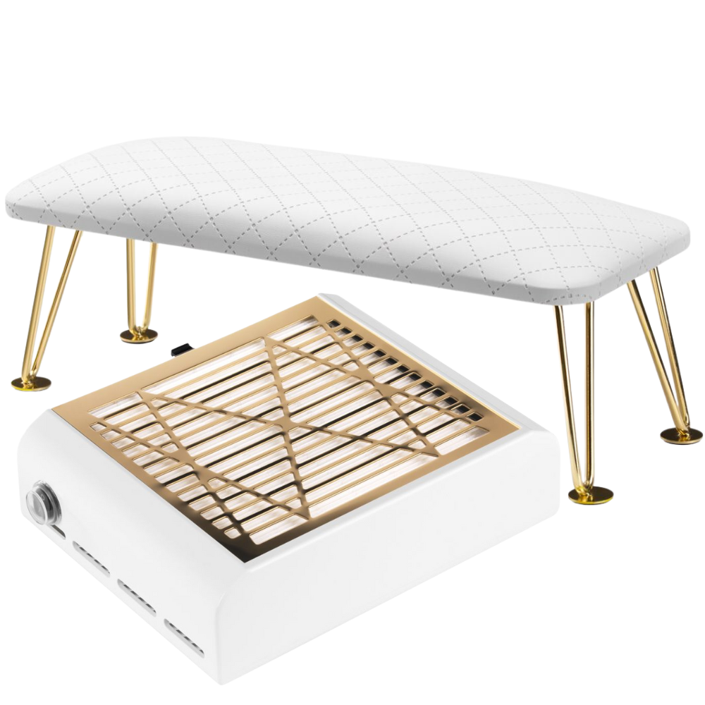 Zestaw Podpórka do manicure PIK biała 6m + Pochłaniacz MOMO J23 gold