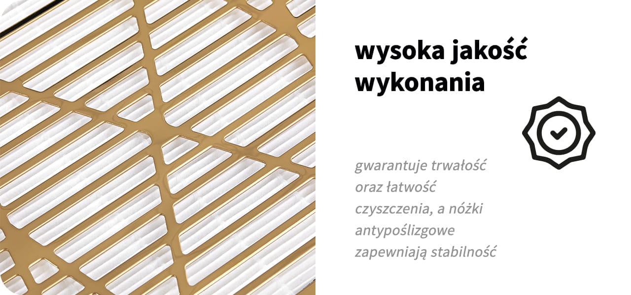 Stosunkowo lekka konstrukcja oraz odpowiednie gabaryty urządzenia zapewniają komfortowe użytkowanie w niemal każdych warunkach. Pochłaniacz bezworkowy Momo J-23 doskonale sprawdzi się zarówno w salonie kosmetycznym, jak i usługach mobilnych czy użytku domowym. Maskownica w odcieniach złota i smukła obudowa w odcieniach bieli nadają urządzeniu elegancki wygląd. Materiały, z których jest wykonane, gwarantują trwałość oraz łatwość czyszczenia. Antypoślizgowe nóżki zapewniają stabilność.
