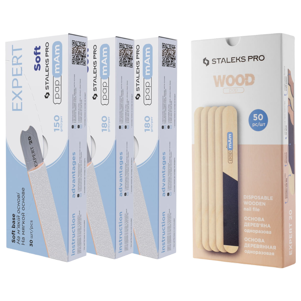 Zestaw STALEKS nakładki z miękką pianką 25x #150, 50x #180 i 50szt drewnianych baz "papmAm"