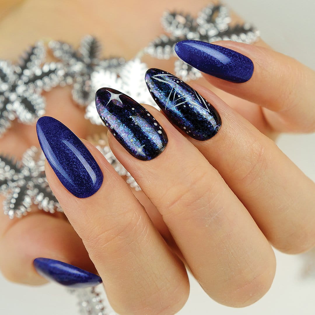 Pyłek na paznokcie można wykorzystać na różne sposoby - efekt przy ich wykorzystaniu zależny jest od grubości nakładanej warstwy oraz koloru bazowego, na który będziemy aplikować produkt. Rekomendujemy nakładanie pyłków Semilac Flash Galaxy na lakier hybrydowy Semilac Black Diamond 031 – to najlepszy podkład, który zapewnia maksymalne wydobycie efektu Galaxy w stylizacji. Można zatem dowolnie komponować swoje zestawienia barw i uzyskiwać różne zdobienia, nawet nakładając jedynie jeden pyłek na paznokcie Semilac Flash Galaxy.