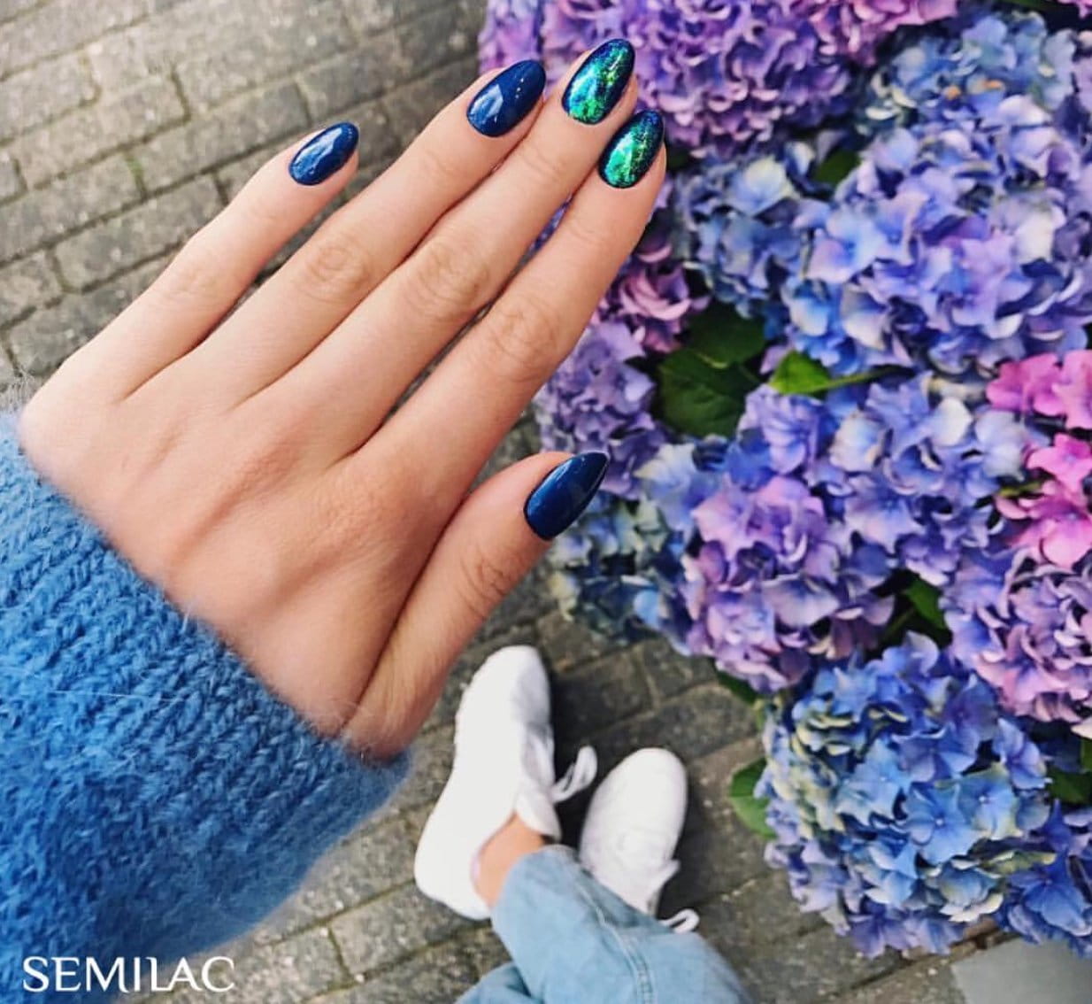 Pyłki Semilac Flash Galaxy Green&Purple – jak wygląda na paznokciach?