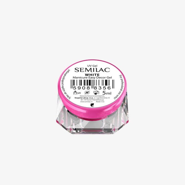 Semilac Manicure Easy Decor Gel to uniwersalny produkt doskonały do modnych domowych zdobień. Dzięki odpowiednio gęstej konsystencji (nie rozlewa się ale jednocześnie jest płynny w prowadzeniu, co zapewnia szybką pracę) oraz mocnej pigmentacji daje możliwość stworzenia różnorodnych zdobień o każdym stopniu trudności. Wykonacie nim najdrobniejsze detale, frencha malowanego, baby boomera i zdobienia geometryczne. Świetnie nadaje się do technik kwiatowych czy techniki sugar effect. Sprawdzi się również do zdobień ślubnych, pięknych ornamentów i zjawiskowych koronek.