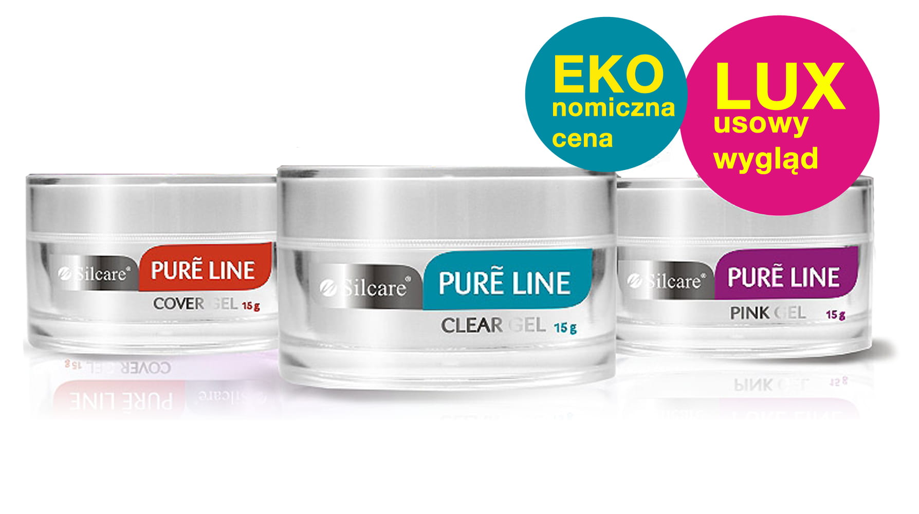 Pure Line to unikalna linia żeli, w skład której wchodzą najbardziej pożądane żele UV: Clear, Cover, Pink, Estetyczne i wyrafinowane opakowanie charakteryzuje czystość i elegancję. Żele w linii Pure wyróżniają się średnią gęstością, posiadają wysokie właściwości samopoziomujące. Są bardzo elastyczne, nie żółkną, nie zapowietrzają się, zapewniają wysoki komfort pracy. Można bez problemów łączyć je z innymi żelami. Cechują się bardzo dobrą przyczepnością zarówno do naturalnej płytki, jak i do tipsów. Produkty bezkwasowe.