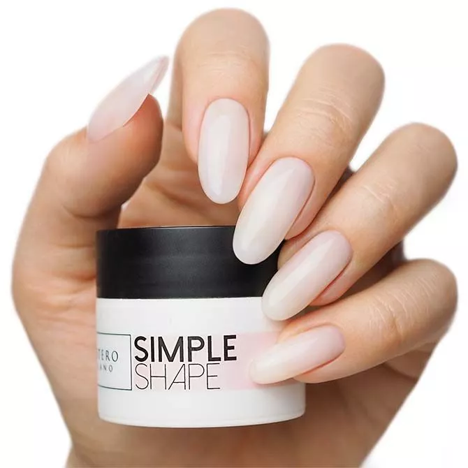 Mleczny żel do paznokci SIMPLE SHAPE Milky white dostępny jest w pojemnościach: 15, 50 g.