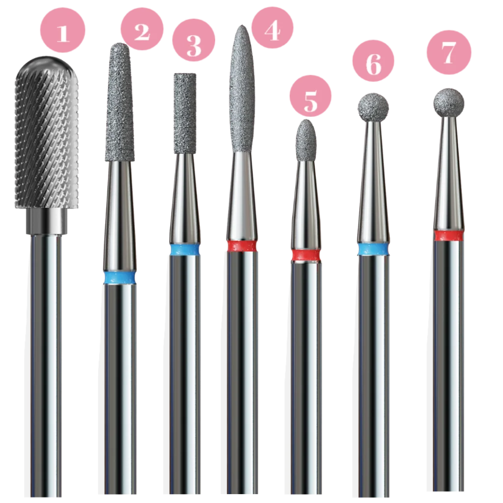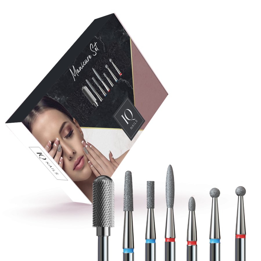 IQ Nails Zestaw 7 frezów do hybrydy, żelu i skórek v23
